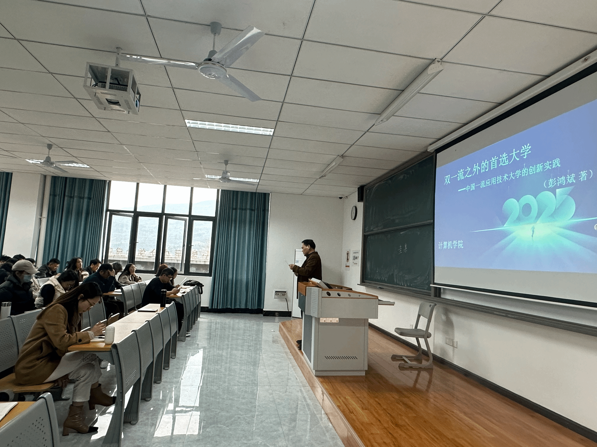 学习会上,学院领导林泽金副院长首先传达了彭鸿斌董事长的讲话内容,重点围绕“认知就是现实”“民办高校的差异化发展”“应用型本科教育的独特优势”等核心观点展开解读。彭鸿斌董事长指出,民办高校不应盲目追求学术型大学的路径,而应聚焦应用型、学思型、复合型人才的培养,打造“双一流之外的首选大学”,这一理念为计算机学院的发展提供了清晰的方向。