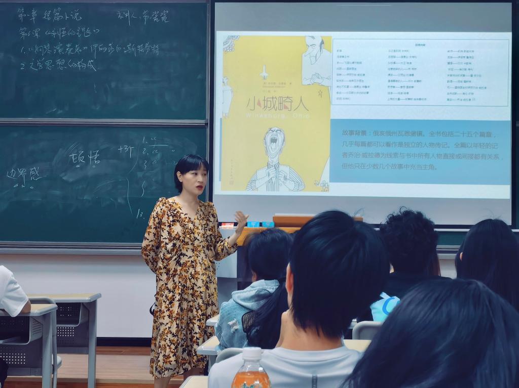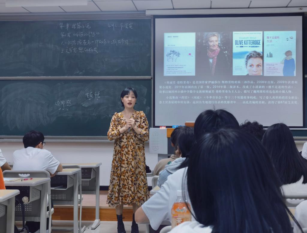随后,苏老师向同学们讲解了美国作家舍伍德·安德森《小城畸人》、日本作家角田光代的《小熊》、川上弘美的《西野的恋爱与冒险》,并将这三部短篇小说集与《奥丽芙·基特里奇》进行比较分析,让大家了解短篇小说如何构成长篇的叙述单元,既独立成章,又相互联结的创作技法。