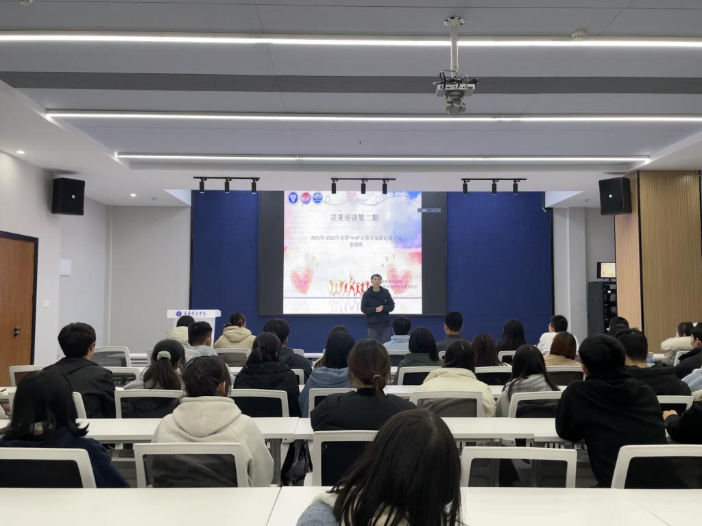 “如何成为一名合格志愿者?”“志愿者的注意事项和基本礼仪有哪些?”“什么是志愿精神?”从着装规范到礼仪要求,从工作实践到精神内涵,青年志愿者协会围绕着志愿者相关工作展开了系列“花果培训”,旨在全面提升大学生志愿者的志愿服务意识与能力,提高志愿实践的技巧。在首期和第二期培训课程中,分别邀请到2018级青协主席刘演军、2017级青协主席赵海国给志愿者们开展培训与分享,优秀榜样的力量是无穷的,前人丰富的经验,精彩的志愿故事,真切的志愿感悟;以及志愿到底要做什么,如何给志愿服务下定义,如何做好志愿服务工作……都是志愿者们急切想了解和掌握的。志愿者们在培训分享中,更进一步了解到志愿的精神,也学到了志愿工作的实践技巧。