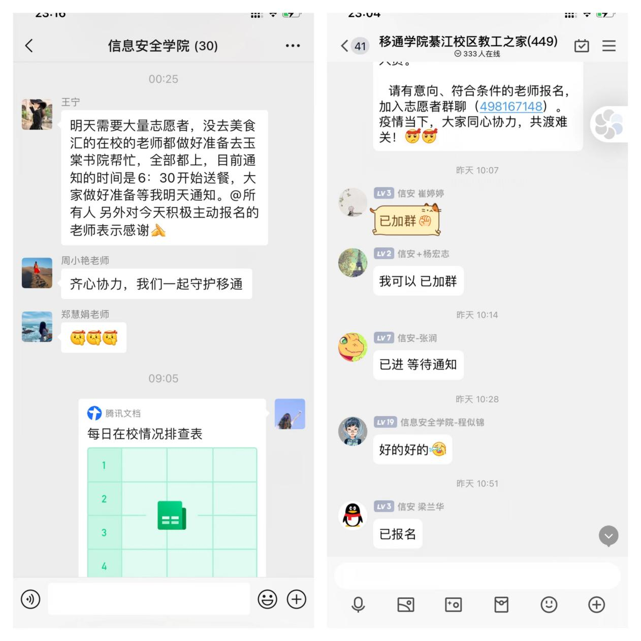 近日,面对突如其来的疫情,学校迅速作出反应,成立疫情防控专项工作组,高度重视,多次召开疫情防控会议,保持战备状态。虽然疫情靠近校园,但是我们没有惧怕。学校坚决落实疫情防控工作部署,守好防疫第一线。在学校的统筹下,信息安全学院的老师们积极响应,在这场没有硝烟的战斗中逆风前行。三尺讲台上,他们是传道授业的老师,在疫情防控前线,他们是甘于奉献的志愿者。讲台到抗疫一线,改变的是工作和场地,不变的是那份责任与担当。