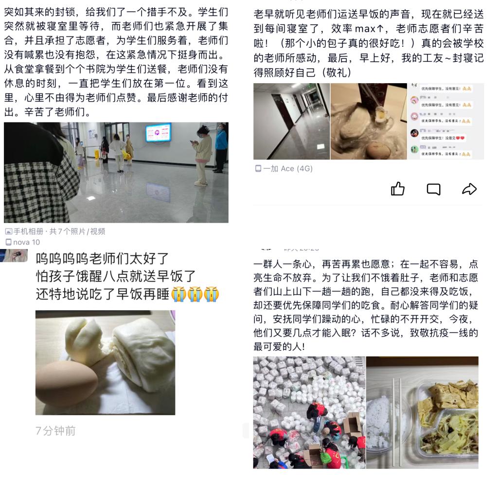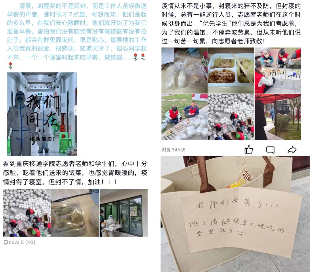 信息安全学院在接到招募志愿者通知后,符合条件的老师们积极报名,他们迅速集结,披上红马甲,拿上小喇叭,就地转化为学校抗疫志愿者,化身楼层负责人、机动志愿者,“管控员”“采集员”“送餐员”,坚守在玉棠书院、綦河书院、教师公寓1号楼、2号楼,从早到晚,发挥物资运输、建立师生情感的纽带作用。他们为封闭管理的师生补充、转送物资,缓解物资转送压力;他们逐楼层逐寝室送餐,双手各拎着一沓盒饭,双腿颤抖双手勒痕,只为尽快将热气腾腾的饭菜送到每一个人手上;他们维持秩序,提醒同学们间隔一米排队做核酸,确保全员核酸不漏一人;他们穿上防护服,协助医护人员扫码。气温骤降,但是每个人都在坚守着。信息安全学院王宁院长做统筹管理的同时,也融入到志愿者的行动当中,送餐、核酸检测中总能看到她的身影。信息安全学院即将60岁的梁兰华老师,第一时间加入志愿团队,哪里有需要就向哪里集结,热心地为封控在宿舍的老师们提供帮助。
