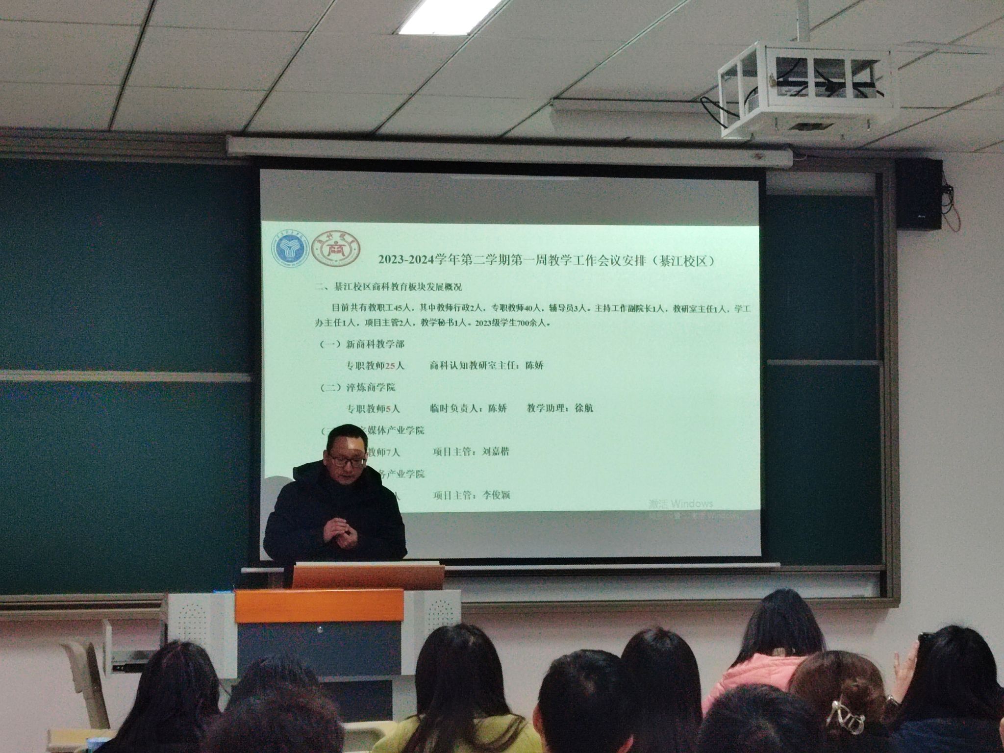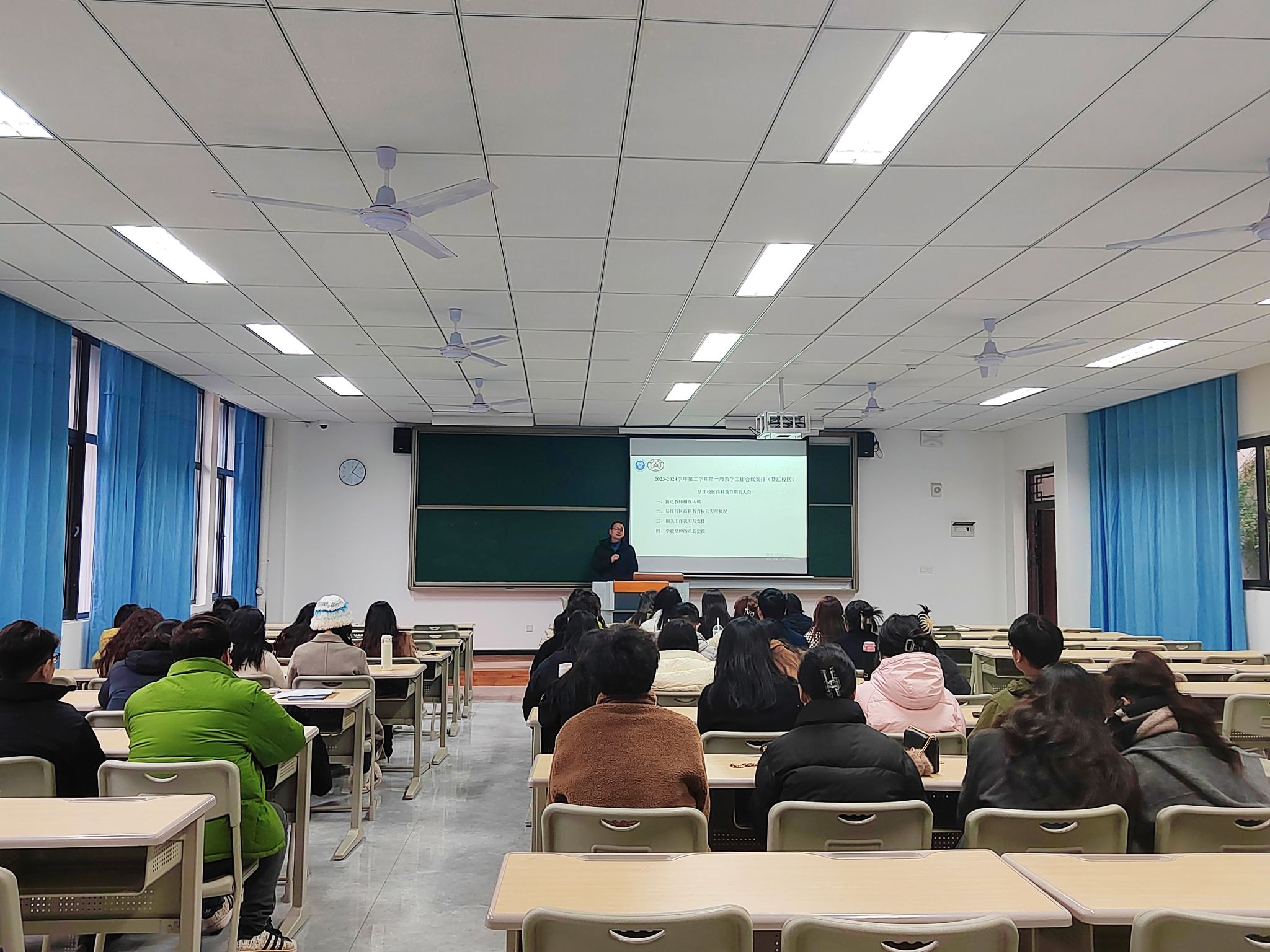 学期伊始,万象更新。为确保新学期各项工作顺利开展,2024年2月28日下午16:00,綦江校区商科教育板块召开了2023-2024学年第2学期期初教学工作大会。会议由副院长范保珠主持,淬炼商学院、綦江新商科教学部、数字媒体产业学院和酒店商务产业学院全体教师参会。