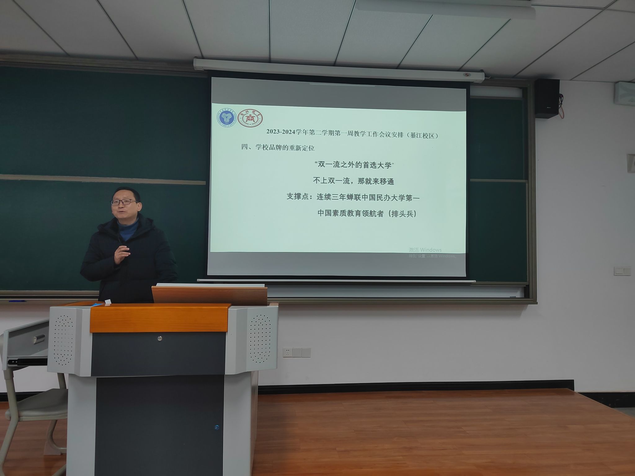 最后,范院长针对近期工作进行了详细部署,包括推进各项教学改革、教学竞赛、上学期工作总结以及其他常态化教学管理工作;并针对学校新的品牌定位——“双一流之外的首选大学”进行了全面解读,对本学期各项工作提出了新要求、新希望。相信全体老师以饱满的热情投入到商科教育发展建设中来,为更好的未来共同奋斗。