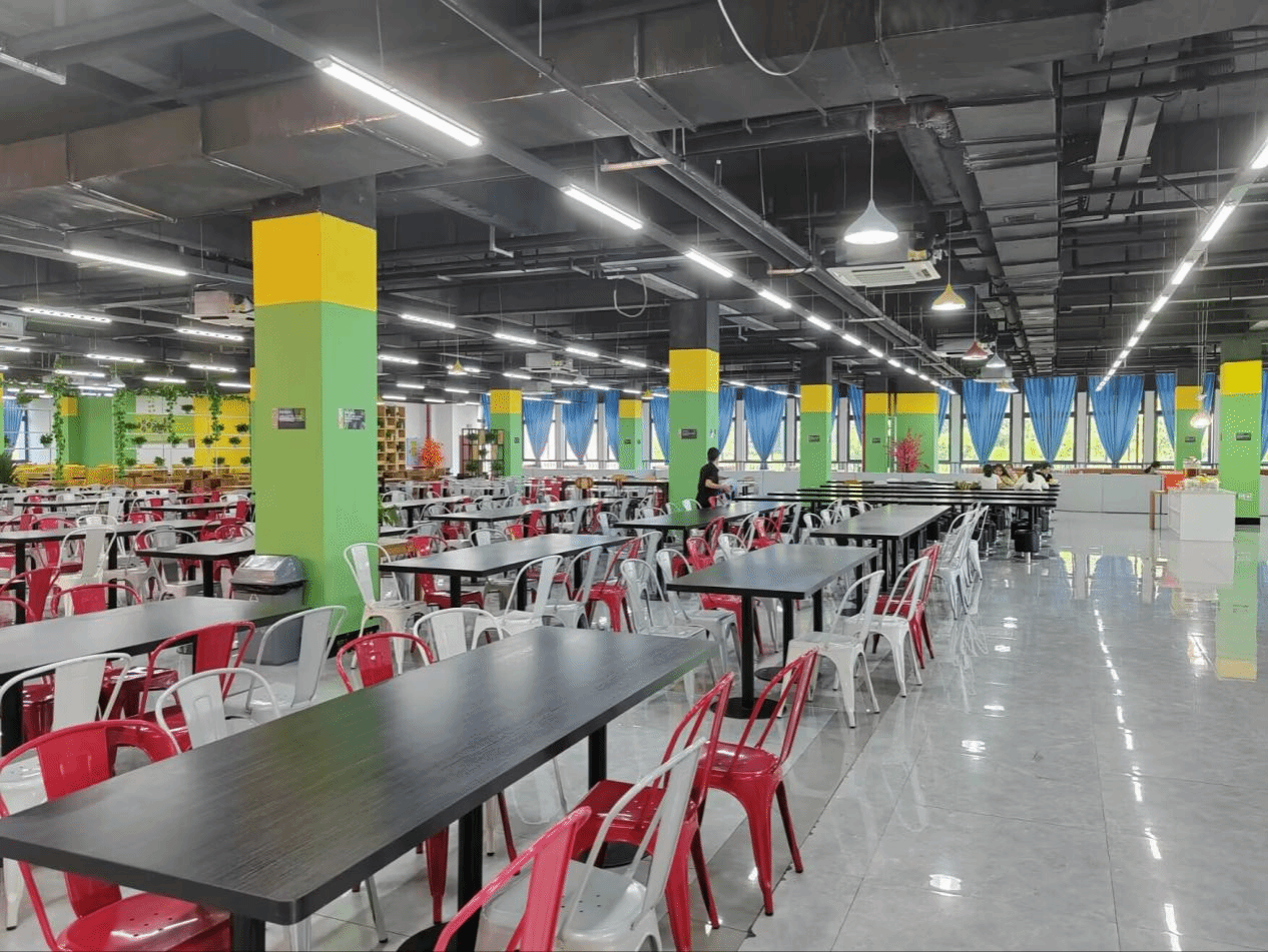 我们跟随经理了解食堂用餐环境的变化及针对新生开学推出的新举措,员工们都穿着统一的工作服,规范佩戴口罩;就餐区宽敞明亮,干净整洁,餐桌餐椅排放井然有序,地面干净;点餐口菜品摆放整齐;餐具放置在专门的消毒柜,安全卫生,全面消毒杀菌。经了解,为保证师生在用餐高峰期能及时就餐,避免因人多拥挤造成安全隐患,食堂放置隔离带让前来就餐的师生有序排队。