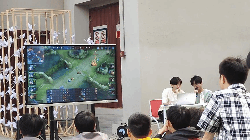 露天比赛对于选手和观众都是一种全新的体验,相比于室内比赛的正襟危坐,露天比赛多了几分惬意,选手精彩的操作引起了众多同样喜欢《王者荣耀》这款游戏的同学围观,纷纷发出“这么强啊”的赞叹,过路的同学们也频频探头观看。电子竞技从不缺热爱,赶时间下班队带给观众们的快乐让同学们从中感受到电子竞技的魅力、乐趣,也吸引更多同学参与到电子竞技的活动中来。