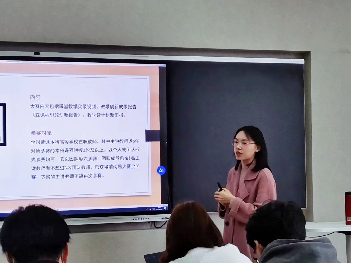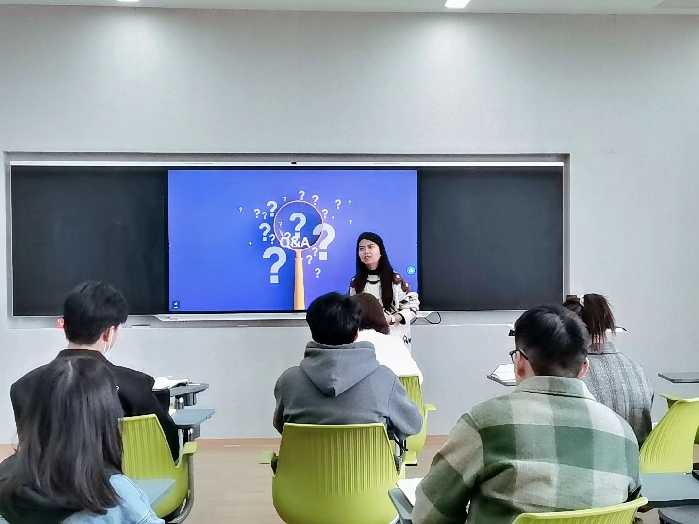 唐智盟老师作在分享会上详细介绍了自己参加西浦全国大学教学创新大赛的经验,分享了比赛的核心理念、参赛人群、比赛流程、评分细节等内容。同时,结合自己获奖的课程《博雅英语(1)》,分享了创新实践和研究经验。她表示,该课程结合“POA理论体系”,提出了“以产出为导向,以学生为中心,教师为主导”的教学模式,通过情境教学和互动策略,在自然的学习环境中引导学生主动参与课程学习。在分享会上,唐智盟老师还详细介绍了自己的项目设计思路、实现过程和获奖经验,并与现场教师进行了交流讨论,鼓励教师们在教学中注重创新与积累,不断深入探究教学中的问题,提高自己的教学水平。