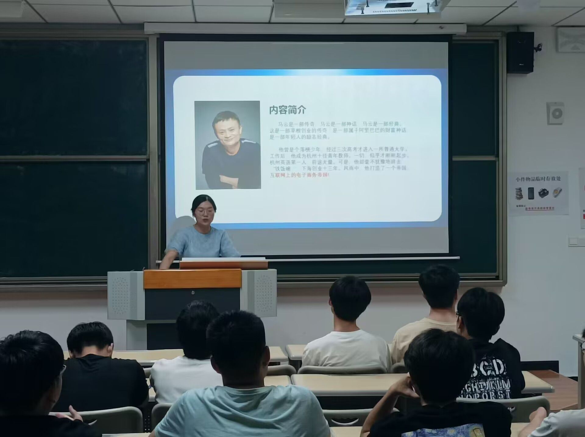 接着,杨丽娟老师以励志名言“一个不屈的灵魂,肯定会打造不凡的未来!”引出了她分享的书籍《马云:路有多远就能走多远》。马云是一部传奇,马云是一部神话,马云是一部经典,正是拥有了不屈的灵魂、不断创新的精神才打造了一个互联网上的电子商务帝国。通过马云创业成功和失败的故事,让同学们知道人生充满很多机遇。我们需要做一位有准备的人,只有这样,当机会来临时,我们才能抓住每一个机会。同时,人生充满很多困难和挑战。没有谁的一生是一帆风顺的,当挫折来临时,我们要有勇气和积极乐观的态度去迎接一个又一个挑战,战胜一个又一个困难。