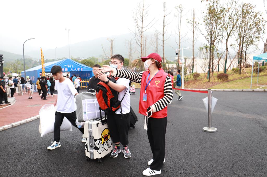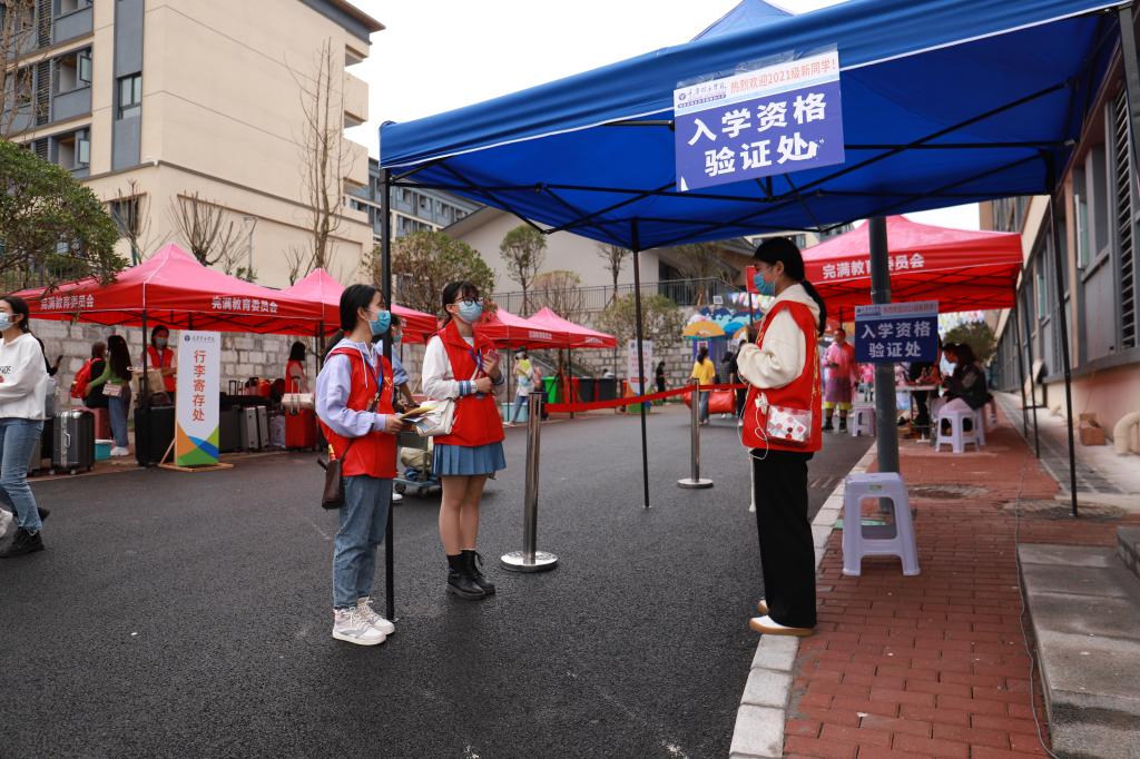 “你好,同学!入学资格验证请走这条通道,你需要准备好......”这段熟练的讲解,出自2021级新生,通信与信息工程学院的叶佳欣同学,上午才到校办理入学,下午就加入到了迎新志愿者团。“这是一个非常好了解学校,认识新同学的机会,看到招募志愿者的信息发布,我就立马报名了。”通信与信息工程学院的陈柔也是首批加入新生志愿者的学生。