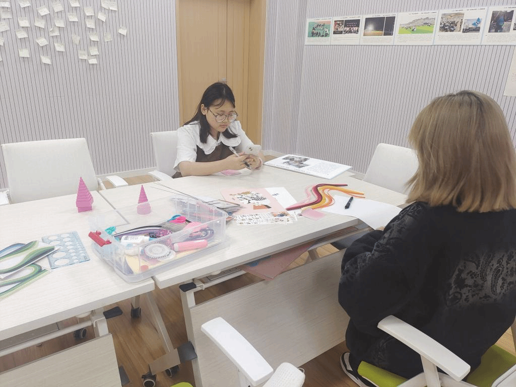 一些同学,可能因为时间原因,并没有提前写好,因为活动可以在现场进行书写,于是同学们拿着彩虹心语社干事提供的信纸和便签,一部分人在干事的带领下来到心理团辅室进行书写。心理团辅室为他们营造了一个安静舒心的环境,有助于他们更好的将自己的内心想法呈现在信纸上。另一部分人则在文化墙外进行书写。时间缓缓流过,写好的同学都排着队将写满自己内心世界的信纸,投入了信箱里面。