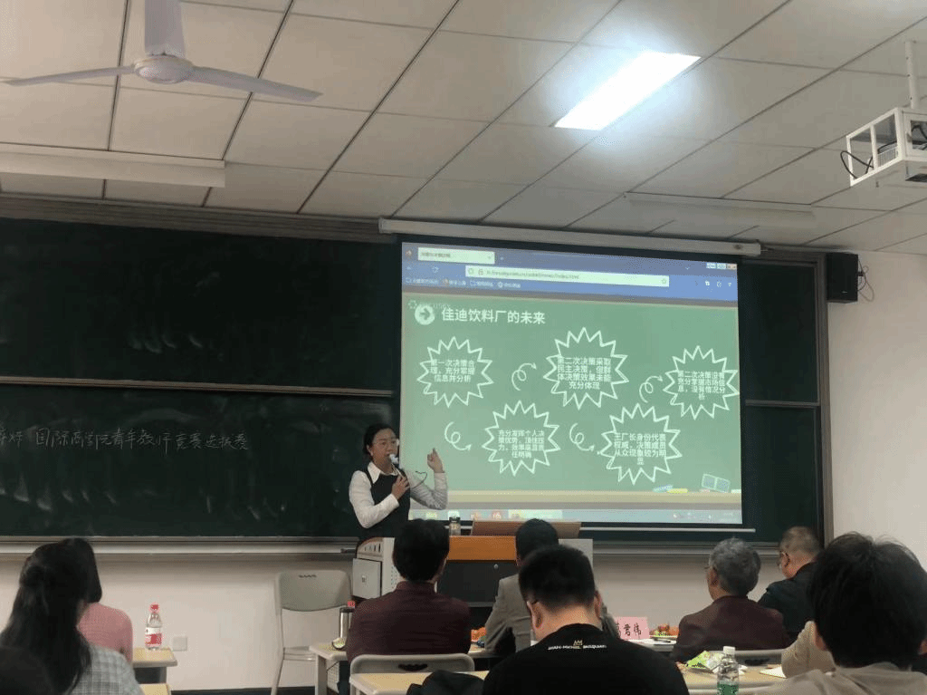 周晓蝶老师在讲解招聘流程时紧扣主题,并积极将课程思政融入教学中,获得师生一致好评;唐秀英老师用多种生动的比喻展开了讲课,她形容招聘中的各个环节,惹得师生哄堂大笑,在活跃课堂气氛的同时,也不忘对课堂纪律的把控。现场观赛教师代表和学生代表一致认为,本次参赛教师着装典雅规范,精神饱满充沛,教态自然大方,通过生动形象的比喻和引入案例,有层次、分重点地教授专业知识,并灵活运用多媒体设备,图文并茂地进行课堂呈现,深入浅出,符合学生实际需求,非常具有启发性。