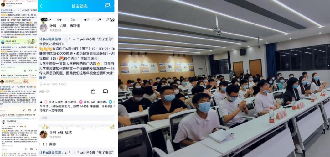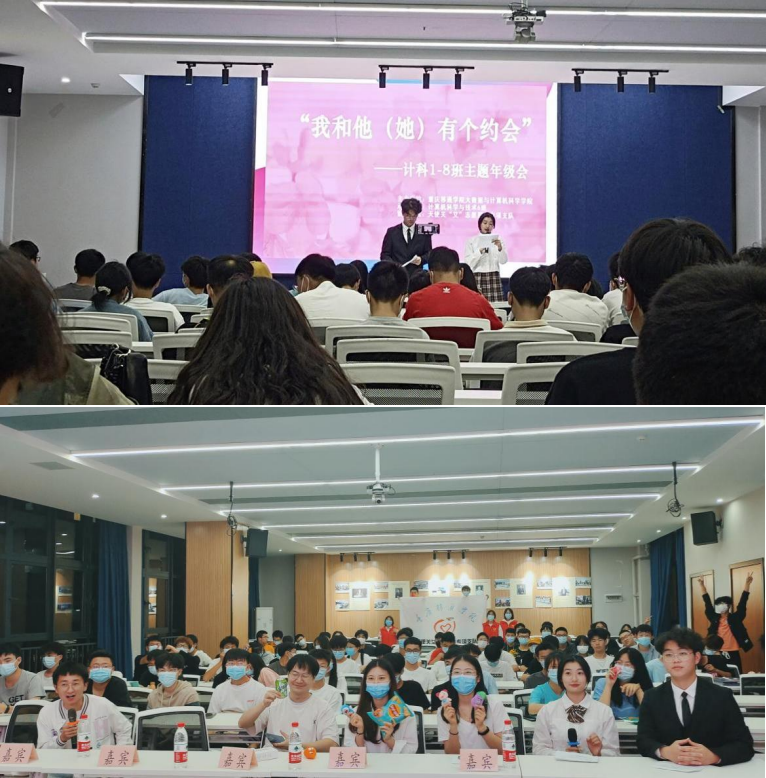最美人间四月天,暖风细雨酥心头,计算机科学与技术专业六班主办的“我和他(她)有个约会”主题年级会也如期而至,于綦河书院二号楼观涛·多功能报告厅召开。大学生作为个性、开放、新潮的特殊青年群体,在面对爱情这样一种充满诱惑和魔力的感情时,如何树立正确的恋爱观以及如何在恋爱过程做好自我保护是一个值得深思的问题。本次年级会由计科六班罗城和秦如意担任主持人,特别邀请到通信与信息工程学院周俊老师、人力资源处滕宇老师、大数据与计算机科学学院阙小梅老师、李进老师、蔡娜老师、谢沅红老师以及天使关“艾”志愿服务志愿专项支队作为嘉宾,旨在通过本次年级会引导大家树立正确的恋爱观,让优质的校园爱情成为同学们大学青春记忆里的美丽风景。