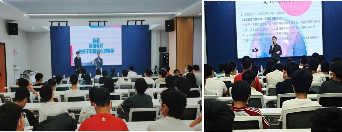通信与信息工程学院周俊老师则给同学们讲述了自己的爱情故事,让大家实实在在体会到何为优质的爱情。他们已经一起走过了九个春夏秋冬,异地六年。异地对于感情来说是莫大的考验,应保持什么样的心理状态来度过见不到对方、不能随时拥抱、不能及时分享欢乐与忧愁、不能当面见证对方很多重要时刻的难熬阶段呢?他们双向奔赴、互相鼓励,周俊老师为爱背起行囊奔走远方,来到女友所在的城市,并计划于今年五月份向女友求婚。同学们纷纷表示很幸运成为这段爱情的见证人,祝福他们爱情美满、幸福长久。