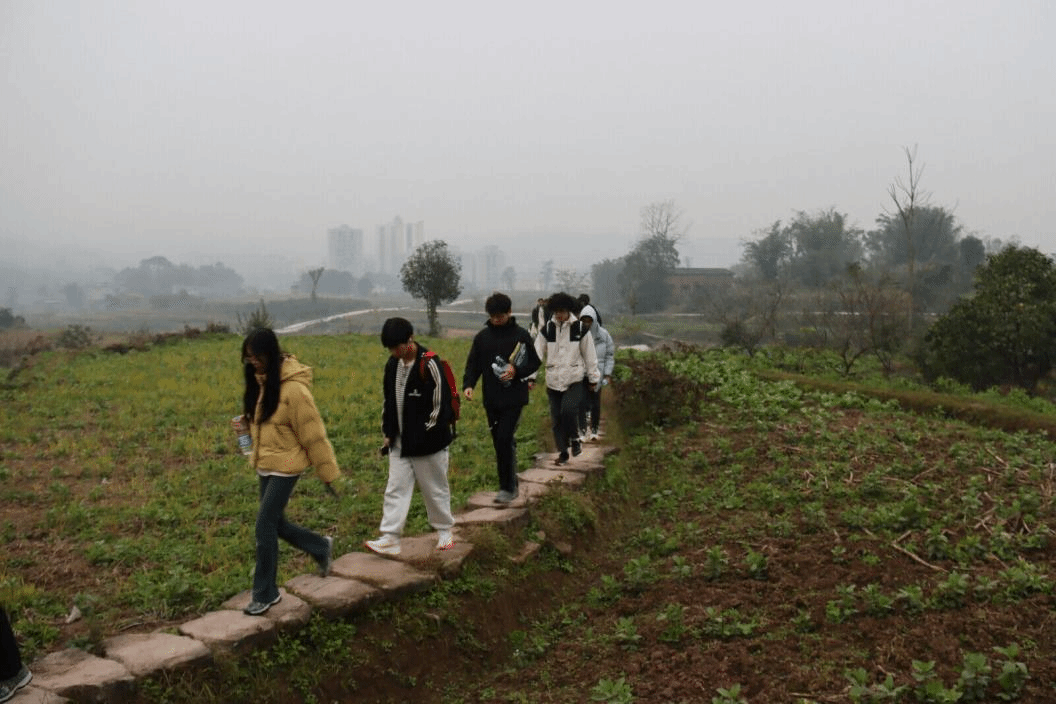 白云观位于老瀛山之巅,海拔1085米,峻峰峭壁、宁静深邃,极具魅力。本次徒步全程约20公里,从綦江校区重庆移通学院出发,沿途景色美不胜收,有层次分明的梯田,也有苍翠的森林。这不仅是一场视觉盛宴,更是对身心的一次历练。曲折的山路、变幻莫测的天气,无时无刻不在考验着参与者的毅力与勇气。