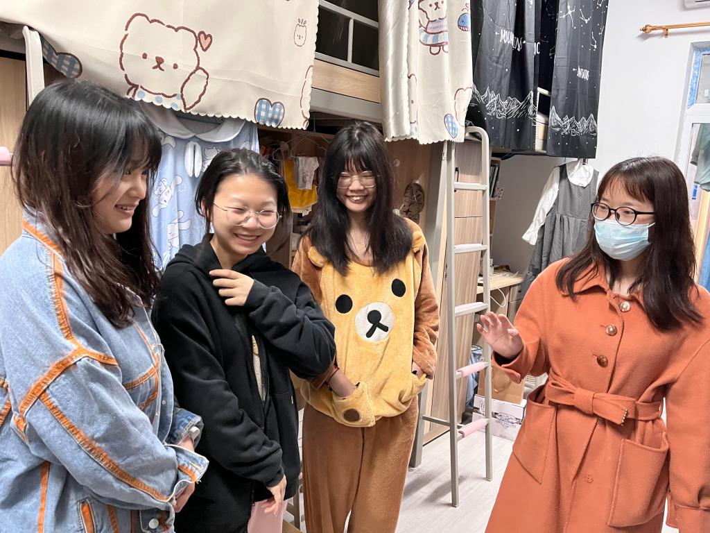 纱窗日落渐黄昏,余晖落尽暮晚霞。霞光透过窗户撒在綦河书院的地板上,触动了书院老师和学子们的心弦。为了深入了解同学们的日常活动、心理状态和对学校的看法及建议,帮助同学们创造更丰富的大学生活,宣扬书院家文化、创建书院朋辈圈层、了解同学们的基本生活情况,鼓励同学们参加书院活动,綦河书院发展导师定期进行寝室走访,进一步加强书院与学生之间的交流。在走访过程中,老师对同学们的日常生活做了简单的了解,并对同学们生活中遇到的问题和困难做出了解答和建议。