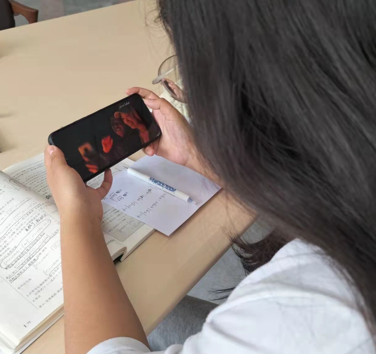青春的热血充盈着无穷的力量,书院的学子永远在拼搏的路上。杨雪锦同学为制作视频,仔细的观看着招生宣传片。对此,杜老师为她提出了建议:“一定要试着打开思路,风格要突出,内容要有趣,尝试着去找一些特别的切入点,不要陷入‘老套情节’,这样拍出来的视频才会更具有吸引力。”杜老师的指导为同学们提供了新的思路和方向,让同学们再次燃烧起了斗志。