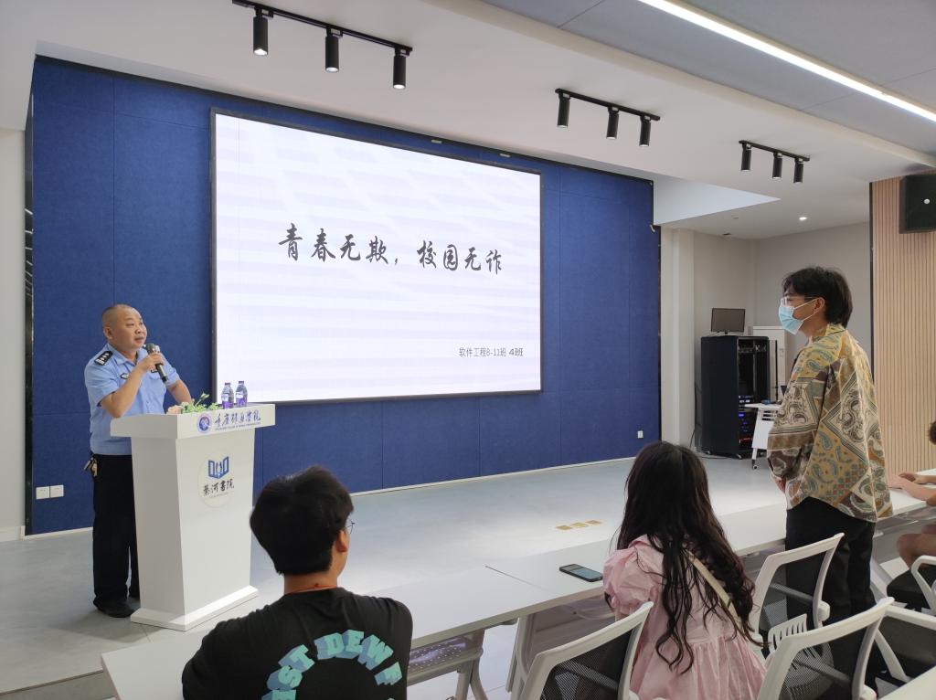 这场讲座邀请了通惠派出所民警付刚来进行此次校园反诈宣传和经验传授。
