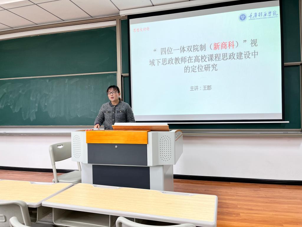 接着,按照教育思想大讨论的安排和部署,思政教学组全体教师开展了“‘四位一体双院制’视域下高校思政教师在课程思政建设中的定位研究”研讨活动。