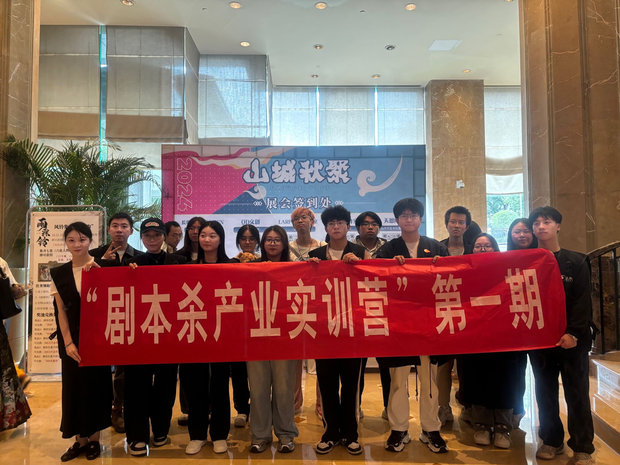 2024年10月21日-25日,云端剧本杀学院3位教师带领12位优秀学生参加了在重庆市渝中区举办的“山城秋聚”重庆剧本杀展会,开启了为期5天的“剧本杀产业实训营”。