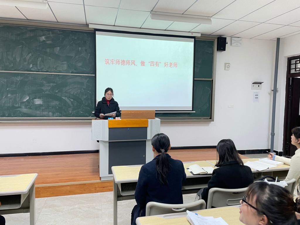 最后,与会人员紧紧围绕“筑牢师德师风 、 做‘四有’好老师”主题,展开了热烈的讨论。老师们秉承我校“乐教、乐学、创造、创业”校训精神,回顾上学期以来的自身教学情况,依次讲解了今后加强自身师德师风的具体做法,纷纷表示将在教学育人实践中不断锤炼高尚道德情操,做一名“四有”好老师。