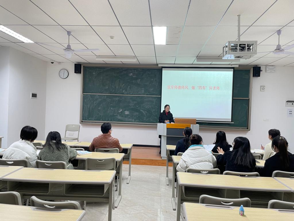 为进一步加强思想政治理论课教师的师德师风建设,提升思想政治理论课教师队伍质量,2022年3月2日下午6点,公共基础教学部思政组召开了“筑牢师德师风、 做‘四有’好老师”主题会议。本次会议由唐孝庆老师主持,全体思想政治理论课专职教师参加。