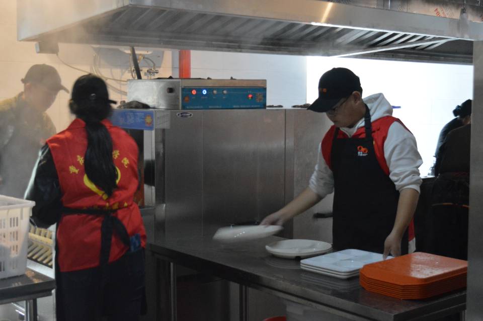 如果青春有色彩,那一定少不了志愿红。12月6-8日中午,同学们络绎不绝的进入食堂就餐,各个点菜窗口格外热闹。最近天气转凉,但是寒风并没有放慢志愿者前往岗位的脚步。后厨小帮手、文明劝导者、清洁小分队都迅速到达岗位。在志愿者们的无限热忱和汗水下,在全体师生的配合下,此次志愿活动期间,餐厅的就餐秩序得到了良好维护,同学们的就餐环境得到了良好保障。志愿服务不分大小,每一次实践都是对志愿服务的更深领会。