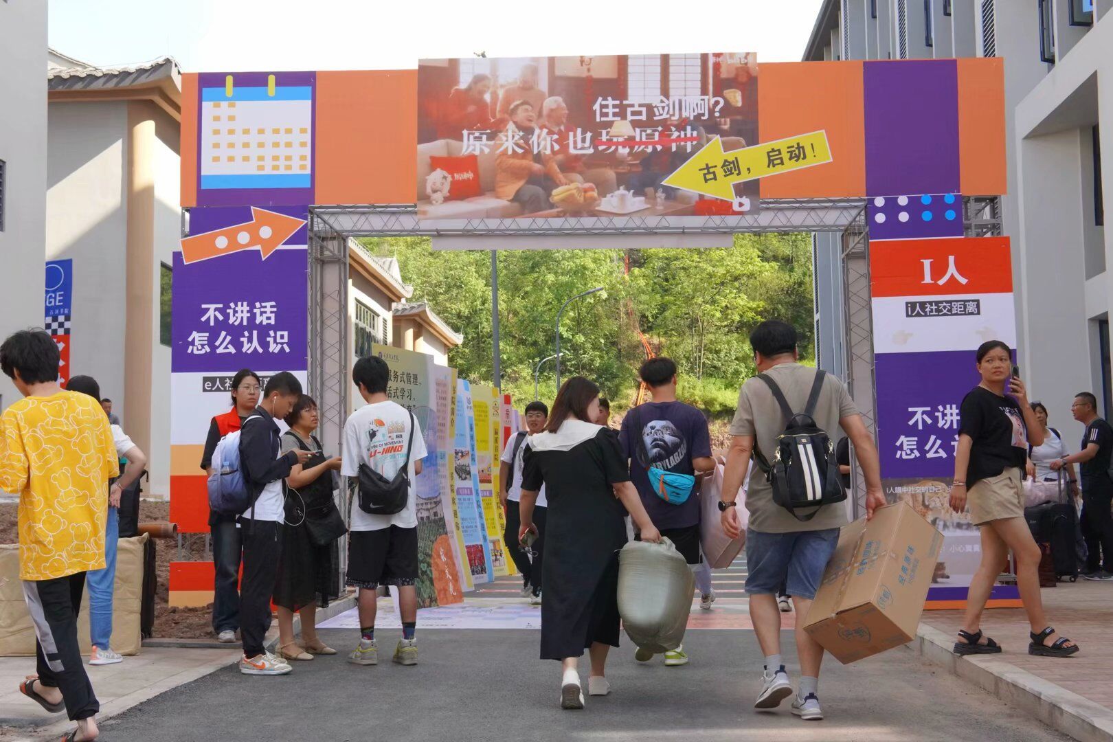 背起久违的书包,整理无限的向往,新同学们带着行囊纷沓而来,书院的各处在老师与学长学姐的布置下氛围感十足。跨入古剑之门,不管你是I人还是E人,都有属于自己的花路;“你也住古剑?尊嘟假嘟O.o”,“主打的就是一个书院制大学!”等改编版网络热词整齐排列在入院处的马路上,总有一条能够唤醒你的网络记忆;迎新点处“你来更好”“NO.1”等打卡手牌,你更pick哪一个呢?书院倾情打造的棠溪·砚友有梗屋等你来解锁更多热词!
