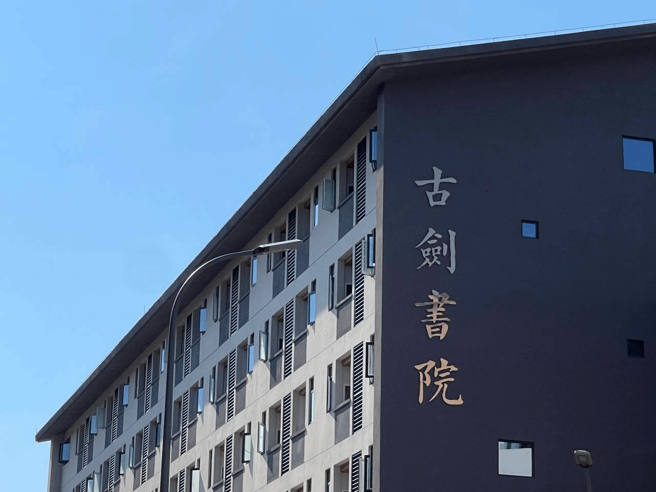 自发文起历时114天,古剑书院不再是钢筋泥土的混合物,它也有着自己旺盛的生命力。楼外中庭有来自远方山林村落间的黄桷树,屋内有备受瞩目的健身房、形体室、剑书阁等10间功能室。古剑书院的浪漫充斥在各个角落:屋顶的飞檐,连廊的立柱,丰富的灯光都显得那样的独特。每一间功能室的名称都取自中国古代名剑,每一把剑都拥有着不同的品质。室内的墙漆颜色的搭配恰到好处,既有橙色的阳光活泼,又有蓝色的安静沉稳。古剑书院里每一处的定格都像一幅风景画。