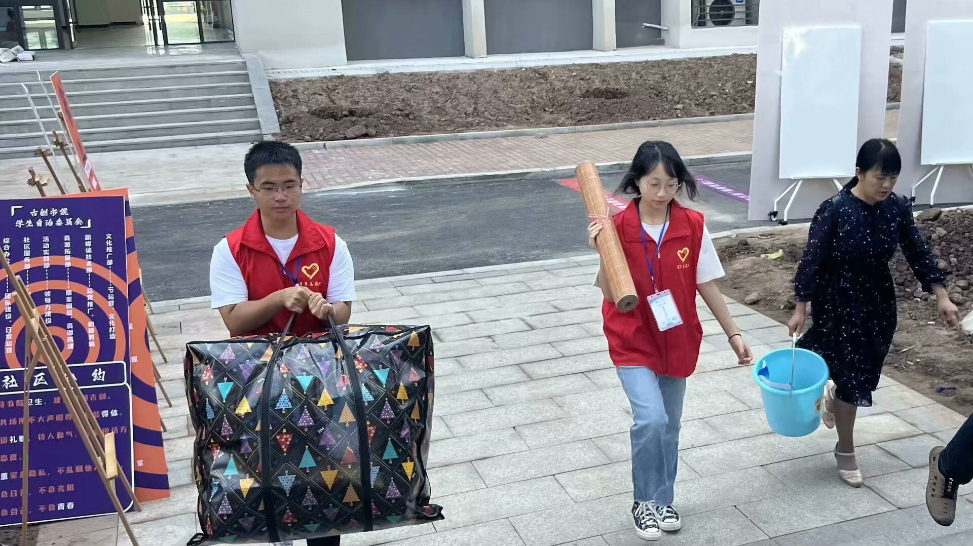 对于新生来说,校园里的楼房是陌生的,马路是陌生的,一草一木都充满着未知。古剑书院学生自治委的志愿者们在此刻就成了他们引路的灯塔。两天半的迎新中,志愿者们热情地为新生引路、搬行李、协助办理报到手续并给予必要帮助。佩戴的工作证此时更像是一份责任,一种荣誉,他们的行动不仅仅是“赠人玫瑰,手留余香”的热心举措,更是作为学长学姐的责任担当。书院老师积极走进学生寝室,与同学们展开愉快的交流,同时了解新生入学期间的需求与困惑,并为他们热心解答。此外还特别设置了家长休息区,让远道而来的家长朋友们也能够体验到书院的温馨舒适。这份真诚与温暖让新生们逐渐减淡了初入大学的紧张不安,有新鲜血液注入的校园,才能闪耀出原有的精彩。