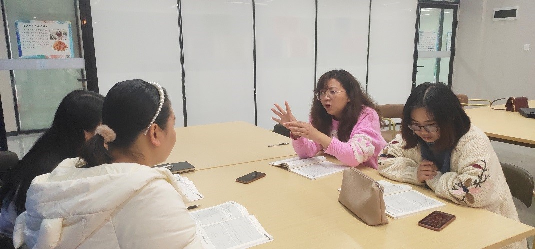 随后,边梦柯老师和叶彩虹老师分别带领负责理工类和工商管理类教师进行集体备课,就《高等数学》上最后一个模块“定积分”的教学重难点进行了研讨。备课过程中,教师们热情高涨,把自己的想法、经验、困惑及教学中碰到的问题提出来,共同探讨,相互启发。在思想的碰撞中擦出智慧火花,研讨气氛浓厚。