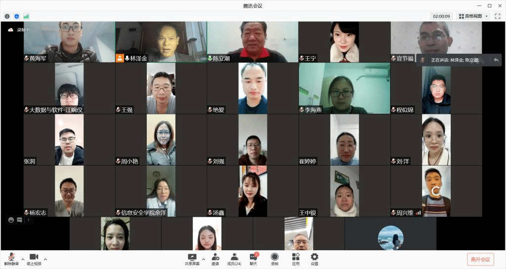 为进一步加快一流课程、一流专业建设,大数据与软件学院邀请中国新商科集团学科带头人陈立潮教授,于2021年11月19日下午3点作了《打造一流课程、建设一流专业》的教学专题报告。大数据与软件学院副院长林泽金、信息安全学院副院长王宁、大数据与软件学院全体教师、以及信息安全学院全体教师参加了此次会议。由于受疫情防控影响,会议由线下转为线上腾讯会议举行。
