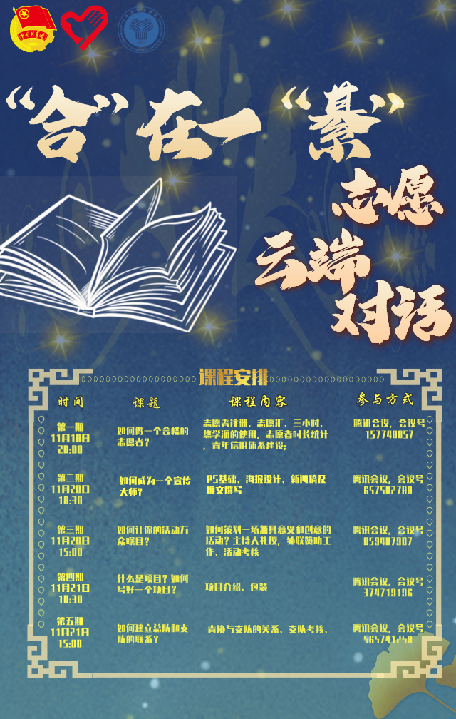 为加强我校志愿者队伍建设,提升志愿者整体素质,规范和促进志愿服务活动有效开展。2021年11月19日-21日开展了为期三天的双校区校院两级青年志愿者协会干事、志愿服务专项支队志愿者云端交流培训会。此次培训会邀请到合川校区校青年志愿者联合会各部门干部主讲,辐射綦江校区校院两级青年志愿者协会干事、各志愿服务专项支队成员全员共计270余人参与此次云端交流会。
