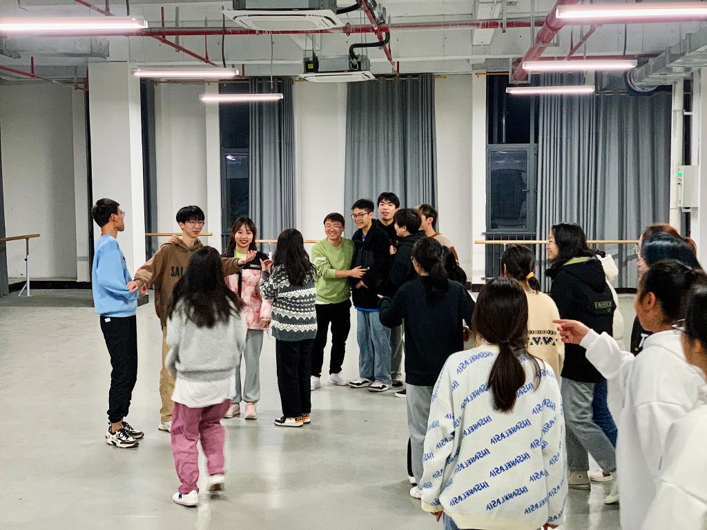 过树穿花踏山河,释放表演识戏剧。寒冷的冬夜里,有这样一群热爱艺术的人酣畅淋漓的为热爱奔赴着,艺术教育中心(綦江校区)为更好的普及艺术修养课程,让更多热爱艺术的同学参与其中,培养同学们的艺术素养,提高审美水平,锻炼艺术专业技能及创作能力,面像各二级学院开展了每周一次以“普及艺术知识”为主题的艺术公开课。第一节艺术公开课于11月17日晚21:30在学生活动中心综合排练厅正式拉开帷幕,艺术教育中心专业表演教师张芷璇老师为同学们带来了一堂充满趣味的戏剧表演课,同学们齐聚排练厅共享戏剧表演的魅力。