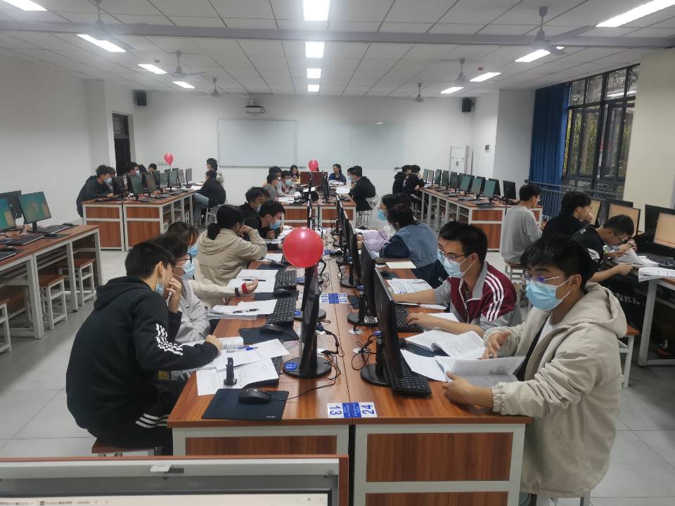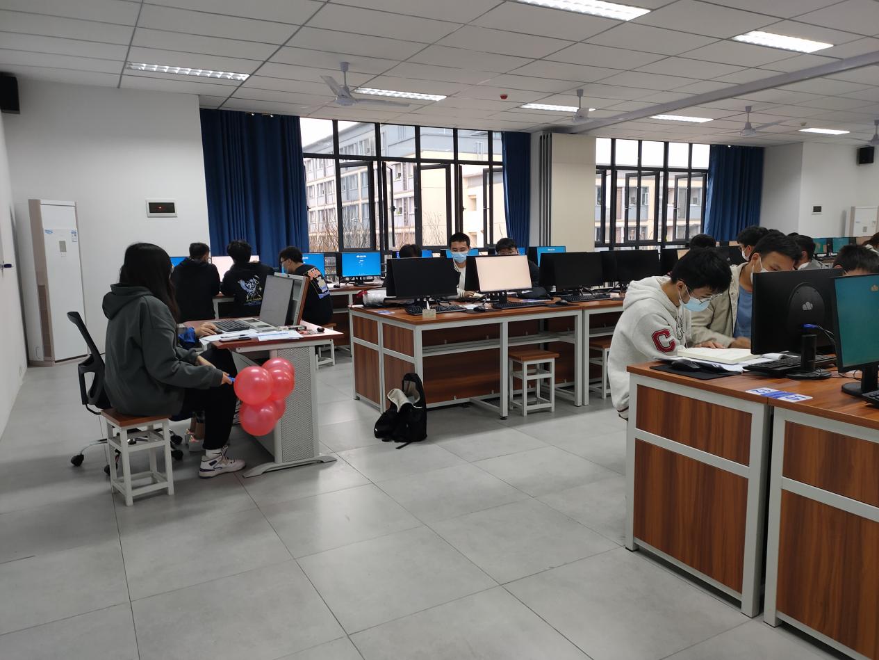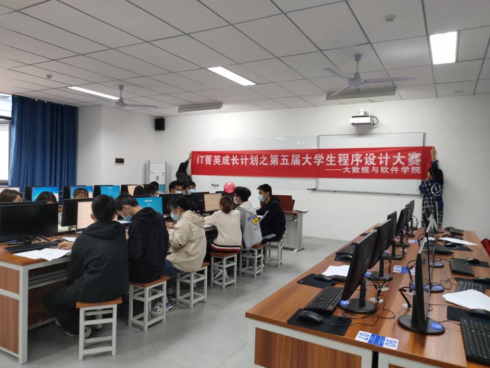 11月,已是晚秋时节。3日下午,秋风已凉,但綦江校区大数据与信息安全实训中心的2楼却异常热闹。因为,下午3点在这里将有一场大学生程序设计大赛。下午2点,本届大赛的志愿者们就早早地来到了实训楼布置比赛场地,拉横幅,打气球,排座位号,他们勤奋积极,热情阳光,志愿为参赛的同学们热场暖身。