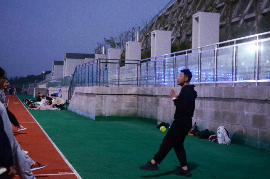 10月27日下午18:30,天空澄碧,纤云不染,远山含黛,和风送暖。武术队第一次见面会得以在极富弹性红绿相间塑胶操场开展。