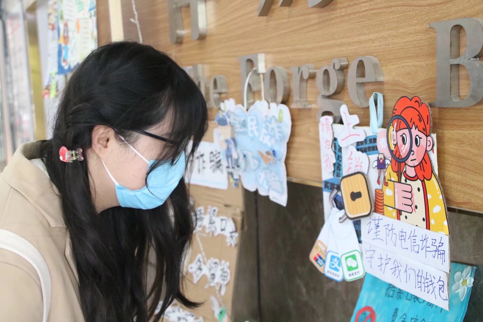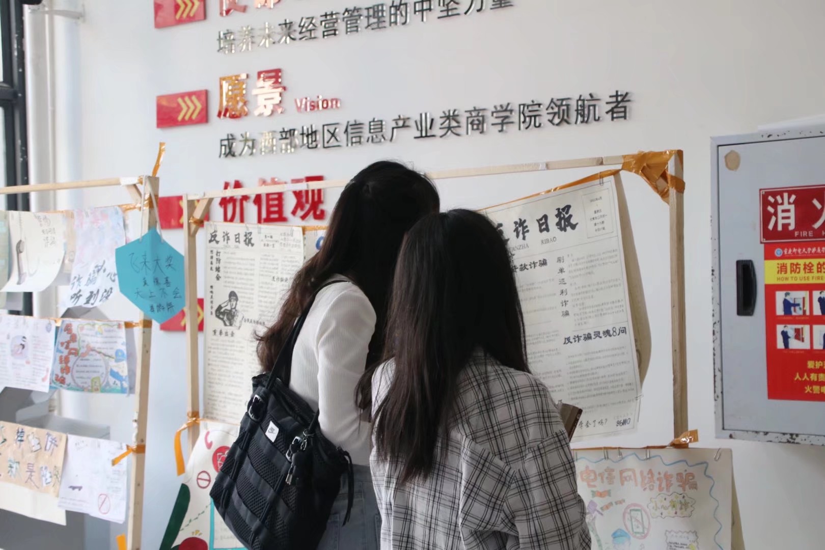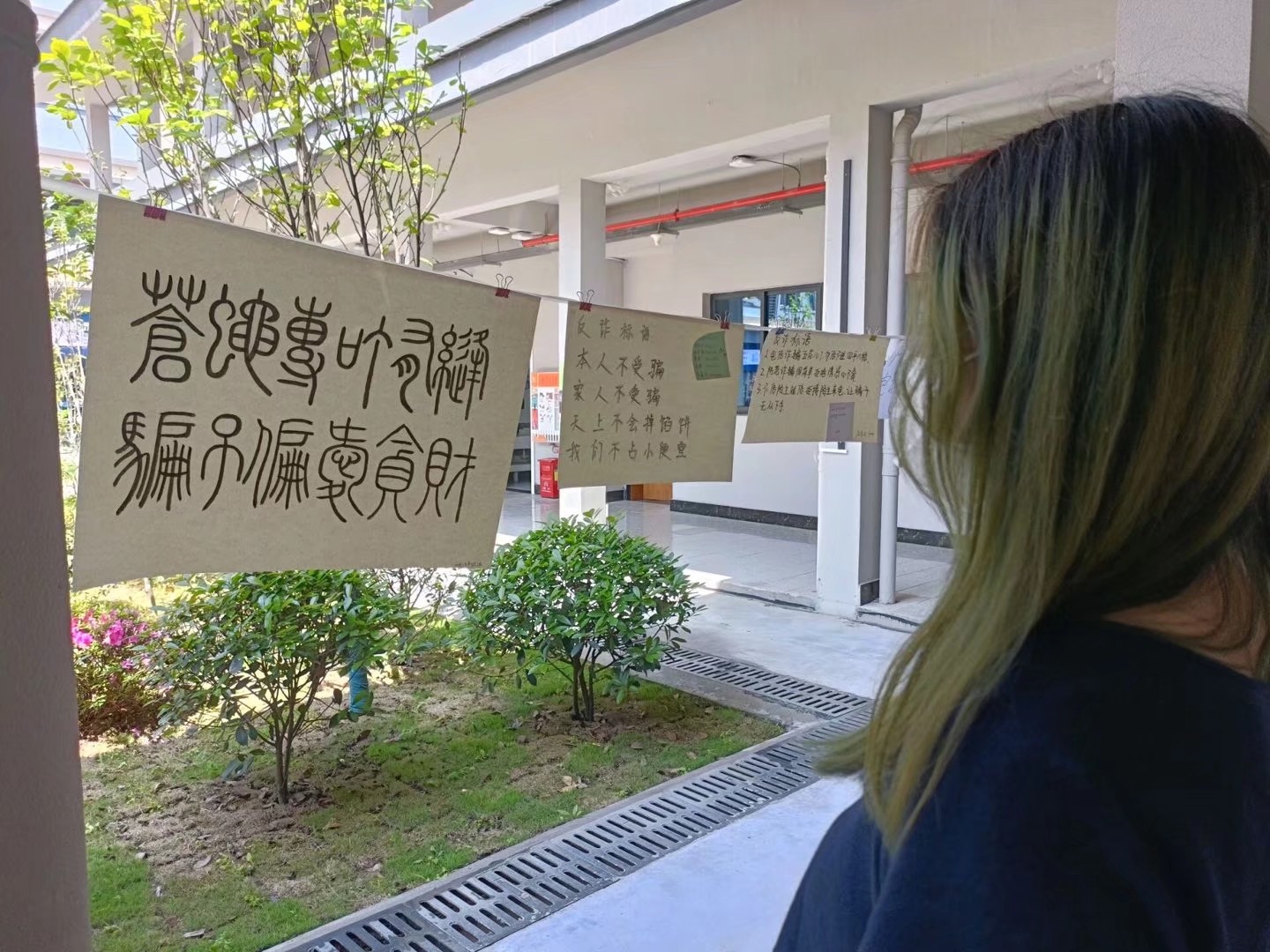 悬挂着的作品,不仅是商院学子的心血,还是学子们响应反诈宣传的见证,镜头下一张张弥足珍贵的相片记录着这温暖而又有力量的时刻。观看作品展览的同学们不仅从作品中收获了反诈的知识,也感悟到反诈防骗不是一个人的战斗,而是要所有人同心协力,保持坚定的信心,坚持全民反诈。