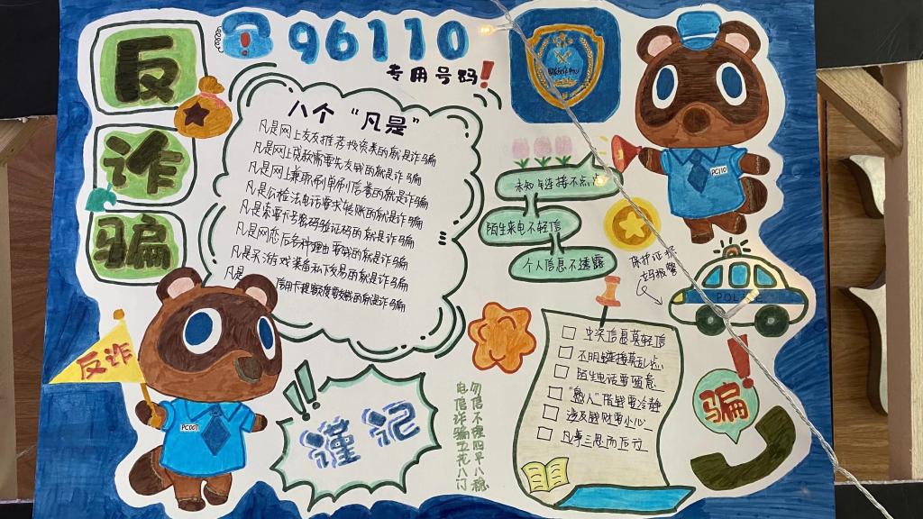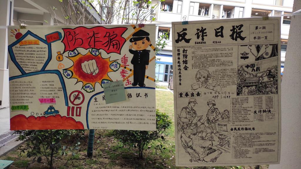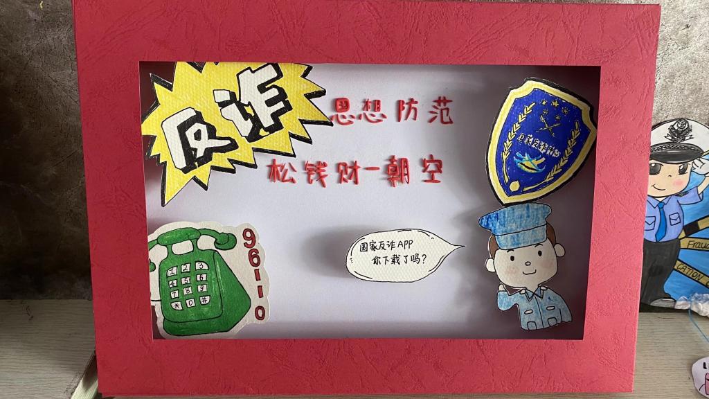 制作者,以细腻的笔触画出参赛作品,向大家呈现出坚决抵抗诈骗的决心与毅力,展示了对待诈骗“重拳出击”的勇敢与智慧。每一个作品,从纯洁无瑕的白纸到绚烂多彩的画卷,让防诈骗知识以最完满的状态呈现在大家的视野中。它们不单单是反诈骗宣传作品,更是同学们携手反诈决心的体现,彰显着反诈宣传的重要性和紧迫性。