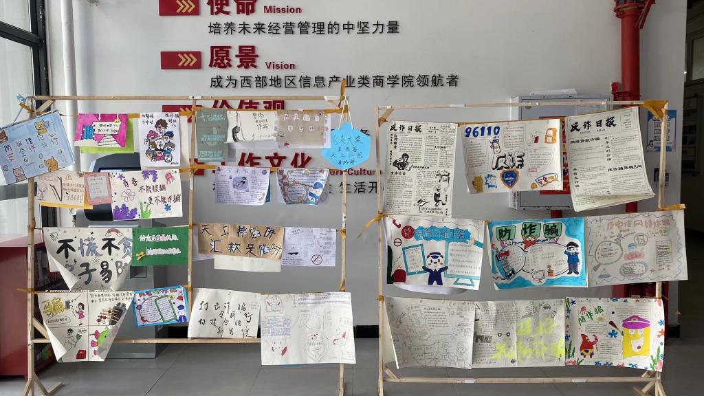 4月6日至4月10日,淬炼·国际商学院在合川、綦江双校区开展了“多措并施齐反诈·全员共护防骗线”——淬炼·国际商学院反诈宣传活动。一起来看看令人惊艳的反诈作品吧!