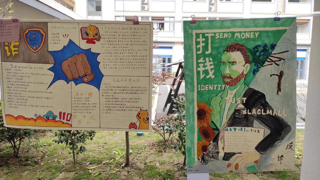 用绚烂的色彩向我们展示了同学们对打赢反诈战争的决心意志