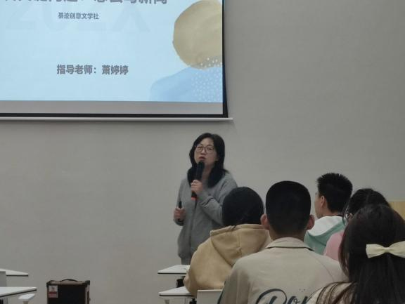 广播文学的种子,让其在成长的“心理”发芽,撒一片真心,换回彩虹般的绚丽。为了提升同学们写作能力和语言表达能力,拓展个人知识技能,提高彩虹心语社、綦迹创意文学社成员的新闻稿写作能力,使大家对写新闻稿有更深入的认识,并且对撰写新闻稿更加的熟练,帮助其与社团共同成长和发展,进一步推进社团成长建设。10月28日下午16:00在横山书院HS333安逸·情绪回收站,创意写作学院教师兼綦迹创意文学社指导老师萧婷婷开展了相应新闻写作培训。