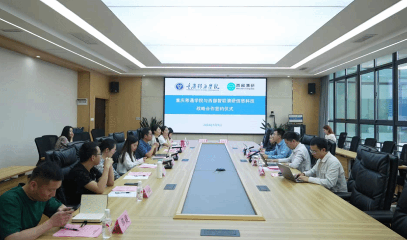 为进一步加强校企合作和产教融合,助力我校建设发展,推动人才培养创新,2024年5月9日下午14:30,重庆移通学院与西部智联清研信息科技(重庆)有限公司战略合作签约仪式在我校綦江校区图书馆第一会议室举行。我校常务副校长王永周、信息安全学院主持工作副院长王宁、学工副院长尹金维、各教研室主任和学工办主任、西部智联清研信息科技总经理严敏、培训运营总监胡翌飞、对外合作商务经理冯奚靖、技术方案工程师何承越出席本次签约仪式。