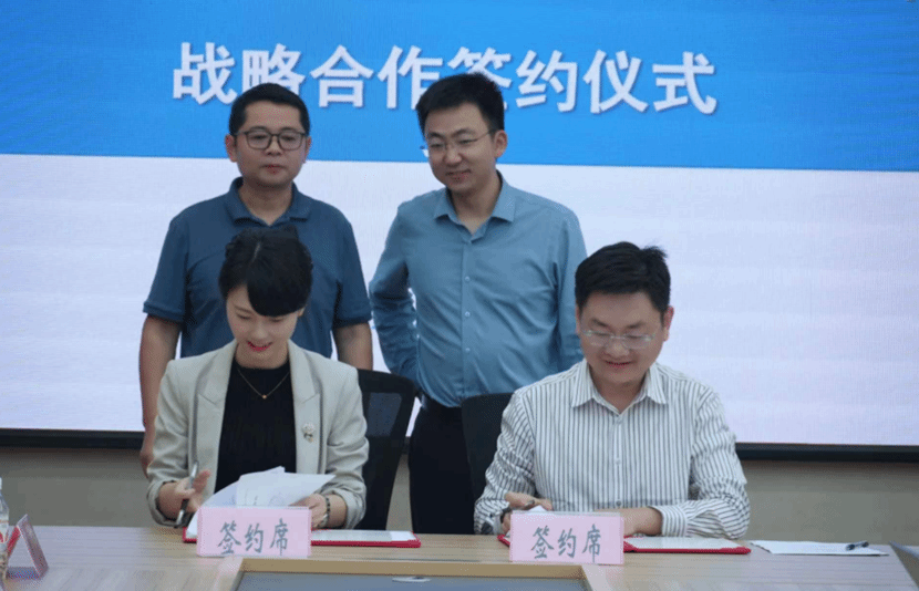 在签约环节,我校信息安全学院主持工作副院长王宁和西部智联清研信息科技总监胡翌飞代表校企双方正式签署了战略合作协议。随后,副校长王永周和总经理严敏共同为双方合作授牌,标志着校企合作正式拉开帷幕。