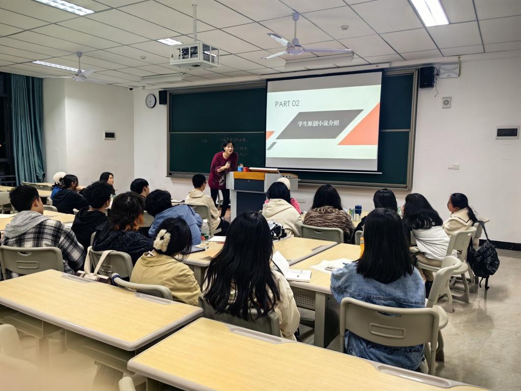回到小说工坊,苏瓷瓷老师走到台下,询问同学们作品创作时所遇到的困难。在大家一一阐述后,苏老师笑着说:“这是写作必定会经历的事情,而正是这些事情,才能促进大家成长。”随后,苏老师又梳理了本学期大致的教学规划,将小说工坊的原创小说进行展示,这对学生即是挑战,也是一次锻炼,相信在这学期过后,我们将从过往的自己中快速成长并蜕变。