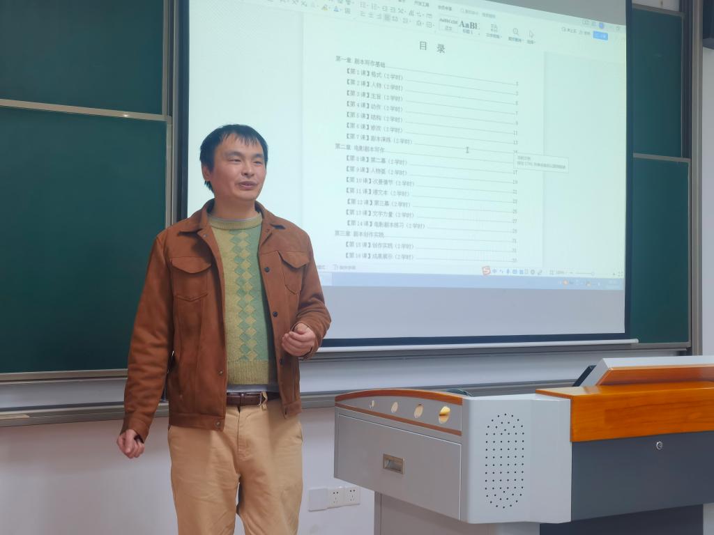 李言老师介绍《戏剧工坊》课旨在通过普及戏剧创作方式,初步了解剧本的创作过程,形成创造性的剧作思维方式。该课程将对戏剧的通性与个性做简要而有侧重性的解析,通过课堂训练和课后观影相结合,完成对剧本魅力、影像魅力、舞台魅力的多重体验。根据授课大纲和实际学习情况,李言老师从剧本创作基础、剧本创作细节、剧本实战演练、舞台表演四个大的方面进行构架,又选择十六个具体小的门类,对学生进行写作的训练。通过知识性的传授和实践写作、引导阅读,让学生了解影视剧剧作的发展过程,理解剧作和阅读的层次。