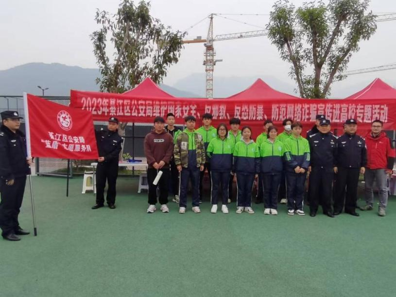 2月28日,区政法委、区反诈中心、区公安局专家和干警们走进移通进入军训阵营,展开新学期校园安全专题宣讲活动。区公安局“蓝盾”志愿者服务队和校区平安志愿者支队,面向2022级全体同学,以集中宣讲、发放传单、案例展示等形式,展开了以“反诈骗、反暴恐、反邪教”为主题的宣传活动。