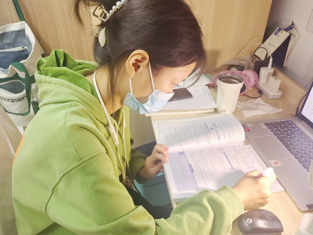 有的寝室趁这次静默管理,互相督促提醒,一起奋战12月的英语四级考试。背单词、阅读打卡、听抄练习...他们全力备考,加强知识储备,充实自己。