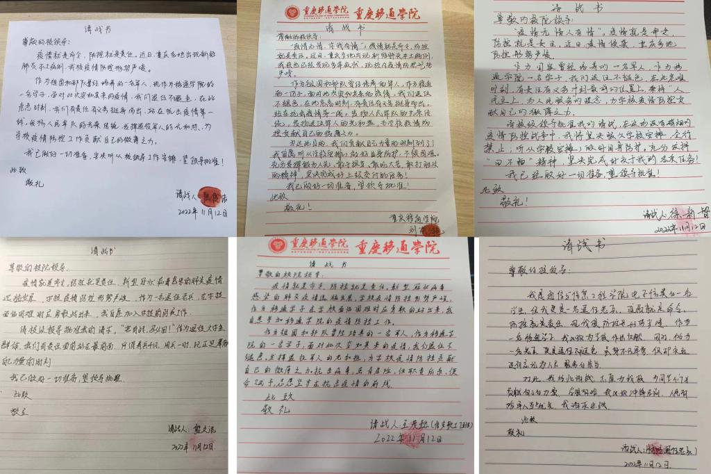“我看到一下眼睛就湿了。”一张张学生群申请当志愿者的截图、一份份学生亲笔书写的请战书、学生亲笔书写的感谢信,还有群里一次次一句句的“谢谢老师”。