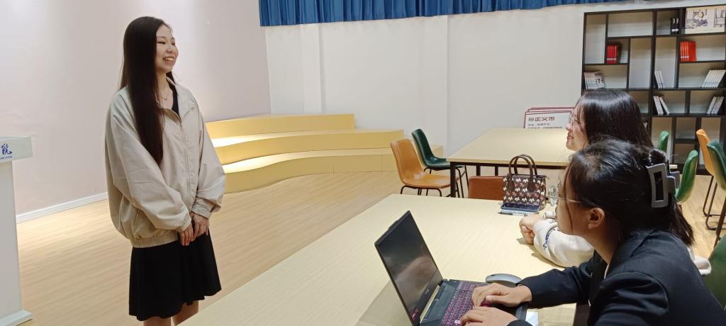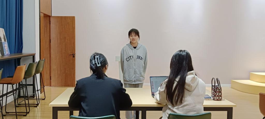 秋风细雨诉说着招新讯息,报名结束后,随即迎来了各部门面试。“同学,请问你对本部门有什么个人的见解?”“请问你对参加志愿服务组织的初衷理念是什么?”……在各个各部门的精心准备下,面试工作有条不紊地开展,同学们在台上慷慨激昂地介绍着,工作人员在台下认真地观察和记录。对于面试官的花样询问,台上面试的同学们并没有觉得陌生与胆怯,反而是从容且自信地回答着问题,他们把对大学的无限憧憬与希望演说,他们渴望在完满的能量中得到爆发。