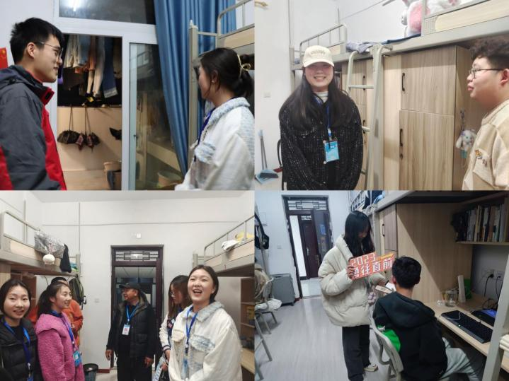 编者按:为深入学习贯彻习近平在全国高校思想政治工作会议上的重要讲话精神,加强“以文化人、以文育人”,持续推进文明校园创建,树立先进典型,发扬榜样力量,充分发挥环境育人功能,营造安全和谐、学风浓厚、文明卫生的宿舍环境,塑造健康向上、形式多样、格调高雅的校园文化,扩大学生社交圈层,团结朋辈力量,促进校区不同楼栋、学院、专业、性别学生间的交流学习,学生处特组织开展查寝体验系列活动。