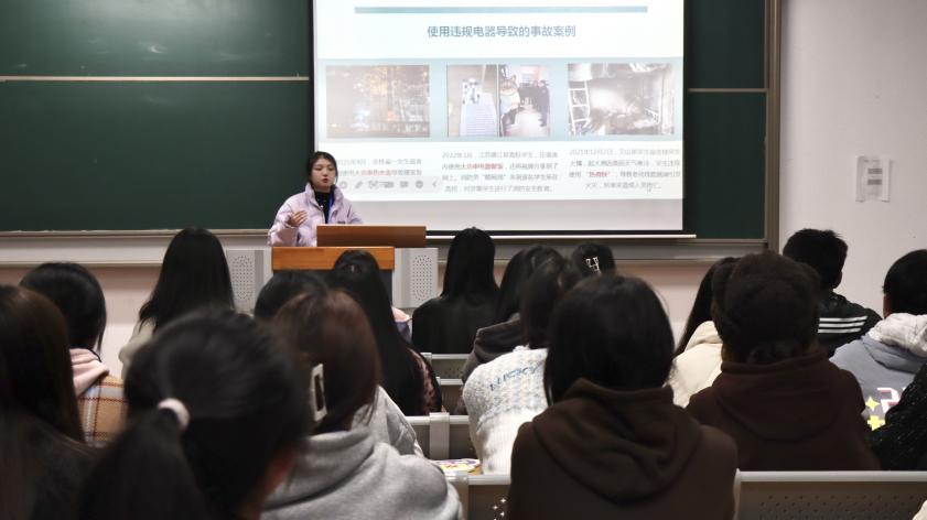 (宿舍巡查员在培训会为同学们讲解查寝目的、查寝流程、查寝内容、查寝礼仪)