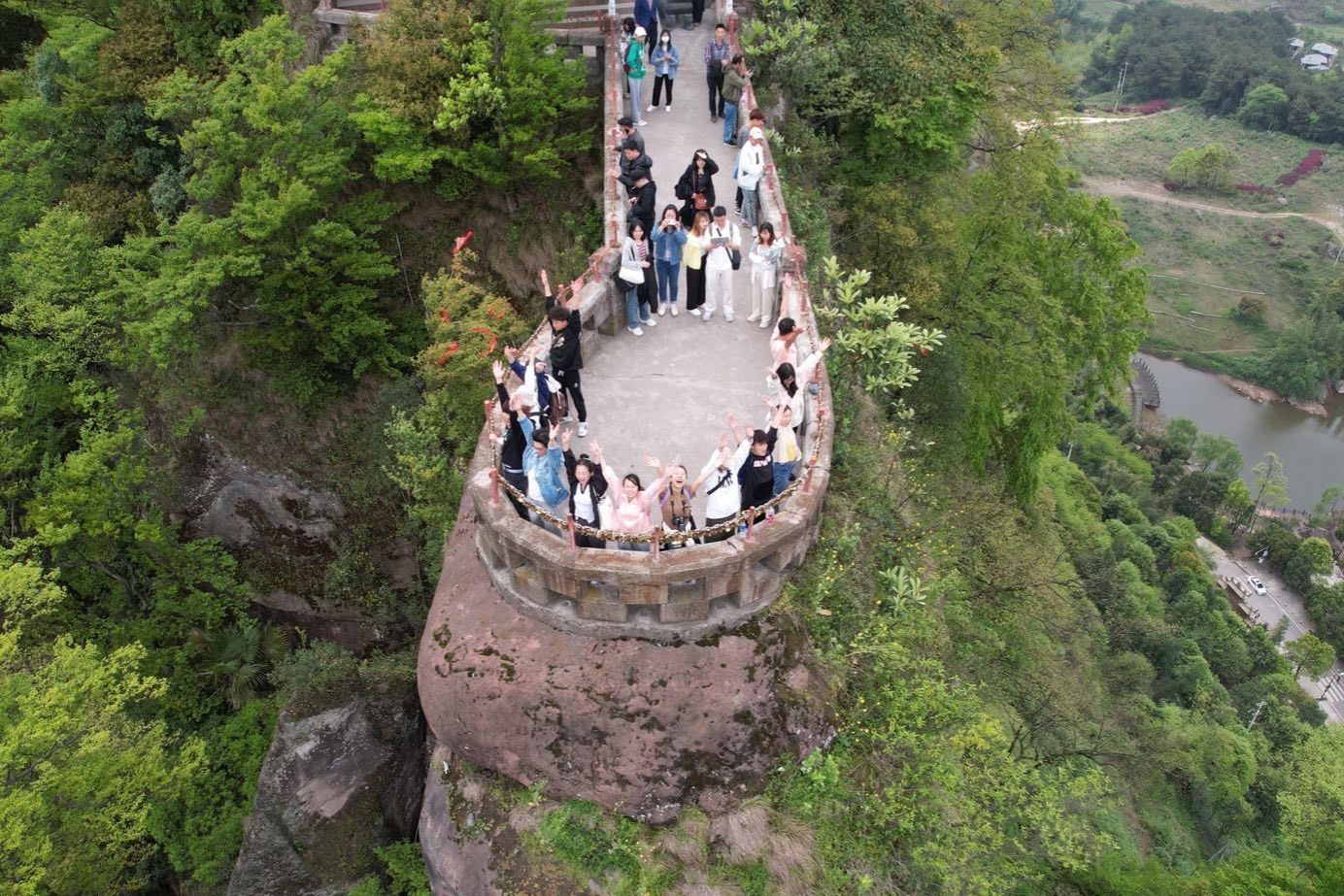 2023年4月9日,綦江校区远景学院邓锦莹导师、黎美茜导师和教学秘书代美莲老师携同学们开启了一场邂逅春的旅程。这次我们来到了“重庆第一佛教名山”——古剑山。人间最美四月天,景区植被繁茂,桦树抽出了嫩绿的细叶,春枫也彰显出耀人的红色,柏树像献宝似的供出了一朵朵暖黄色的花,一眼望去全是醉人的绿。此次活动丰富了学生的课余生活,提升了导师组的凝聚力,体验了古剑山独特的自然风光和文化氛围,增强了学生的历史文化意识。
